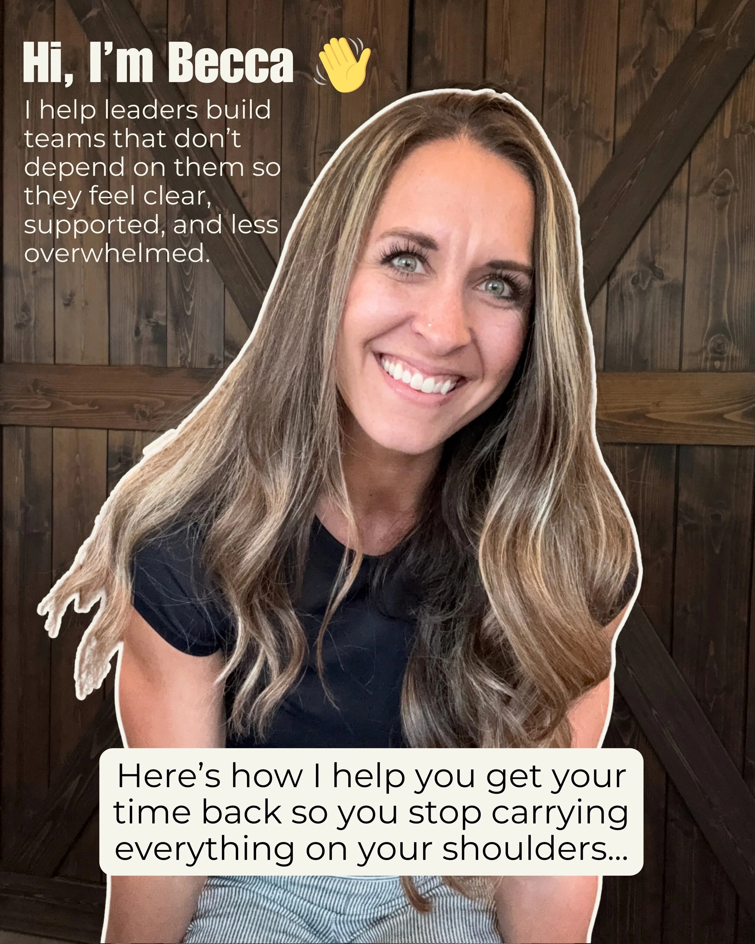 Today, through her program The Aligned Leader, Becca helps clients strengthen who they are as leaders, develop practical leadership skills, create clear team structures, and build cultures where teams perform at a high level. Her clients learn how to get their time back by delegating effectively, communicating clearly, and making confident decisions that move their business forward.